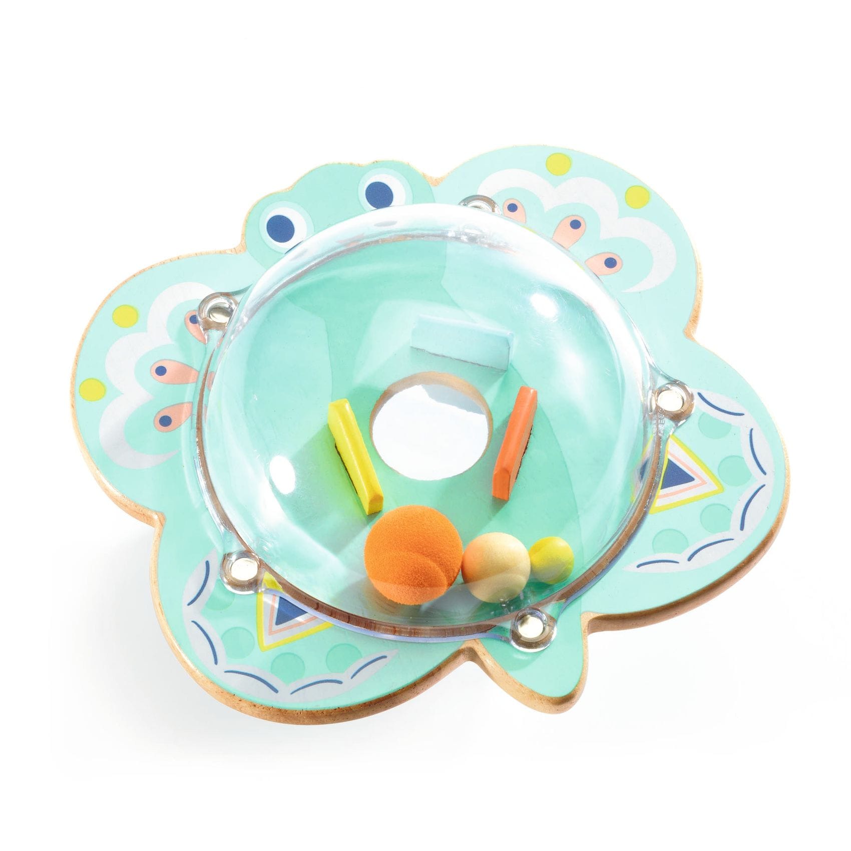 Aseta kuulapeli pöydälle, jotta lapsi voi keinutella sitä ja ohjata kuulat pelin keskelle.