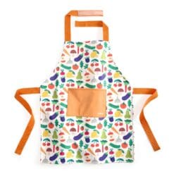 Djeco lasten esiliina vihannekset on pehmeä ja pyyhittävä. Esiliinassa on niskassa tarrakiinnitys, vyötäröllä taaksesolmittavat nauhat ja edessä tasku.