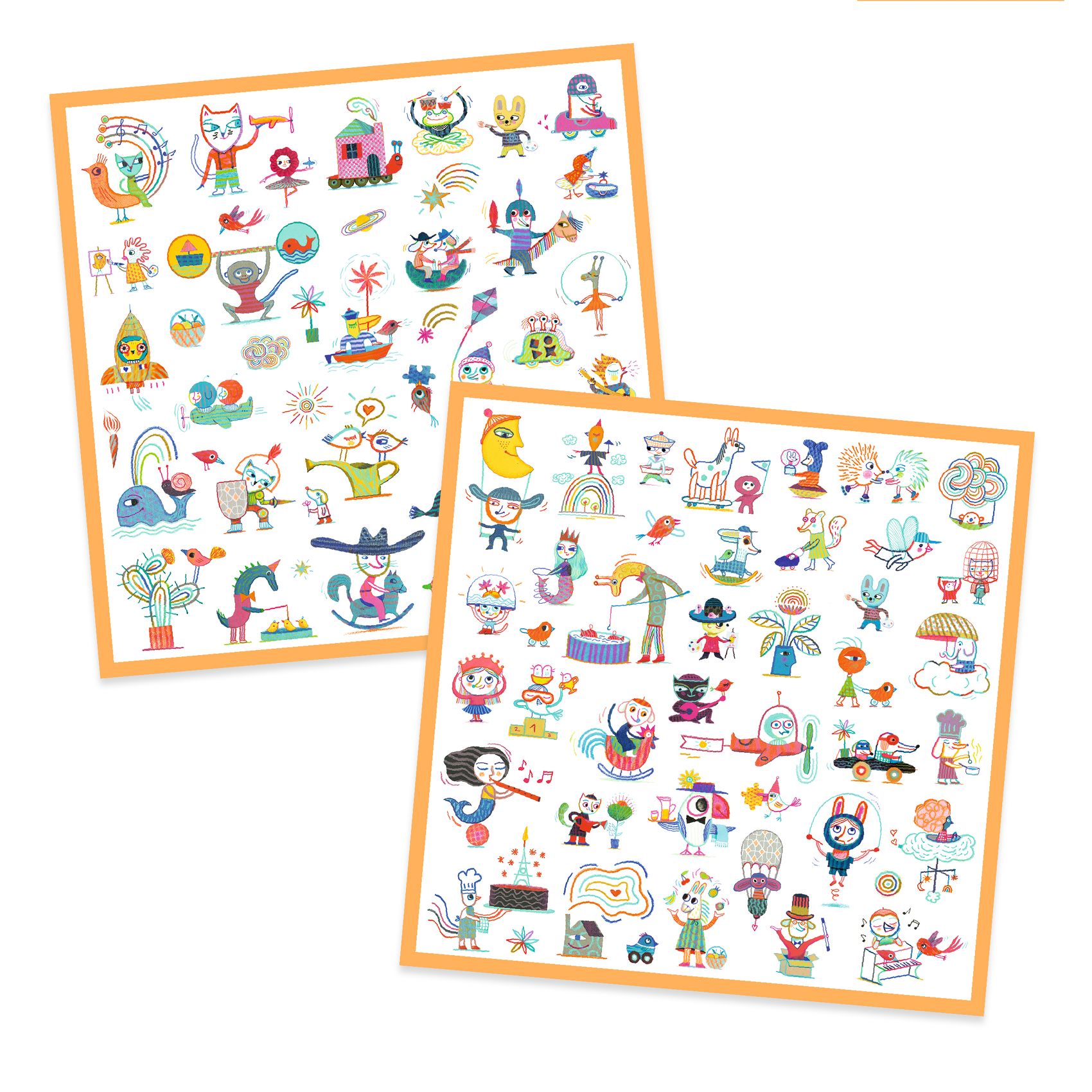 Djeco pienet paperitarrat on kuvittanut Muriel Kerba ja niissä seikkailee erilaisia hahmoja.