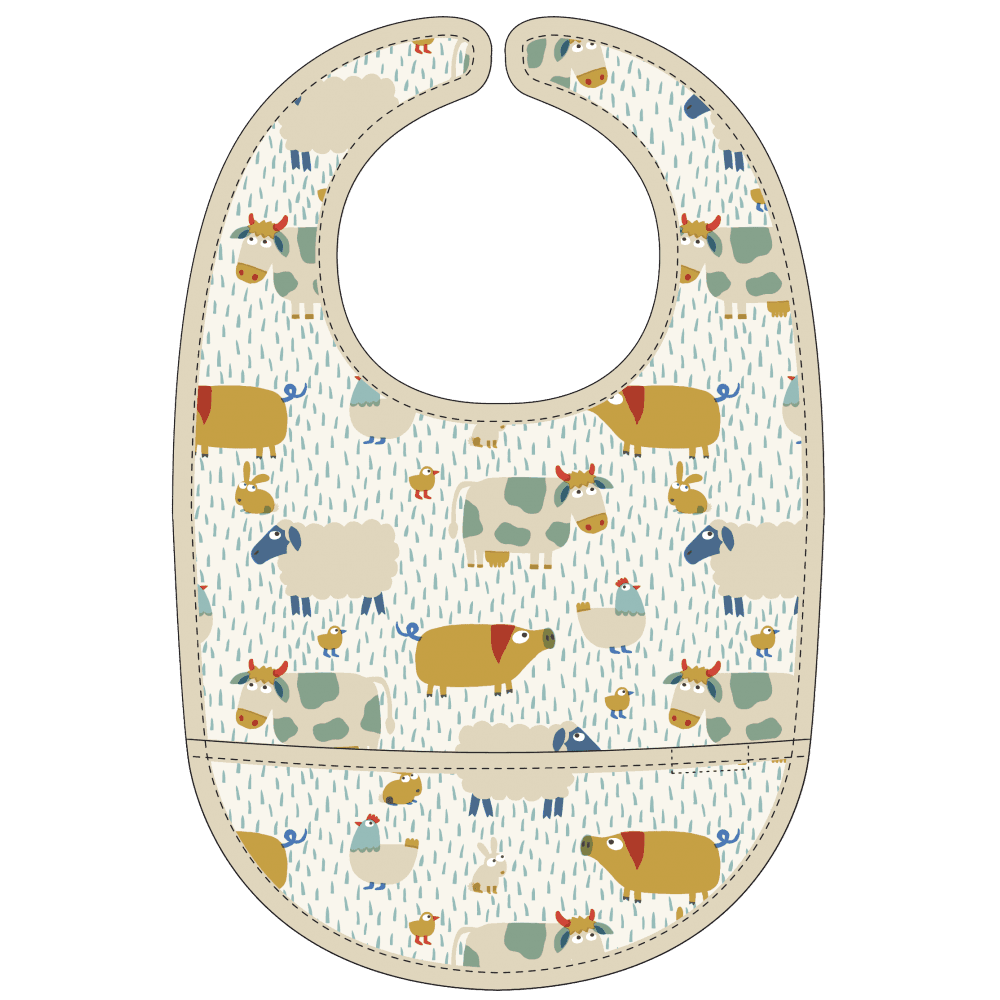 Farmi ruokalappu suojaa vaatteet ruokailuhetkellä.