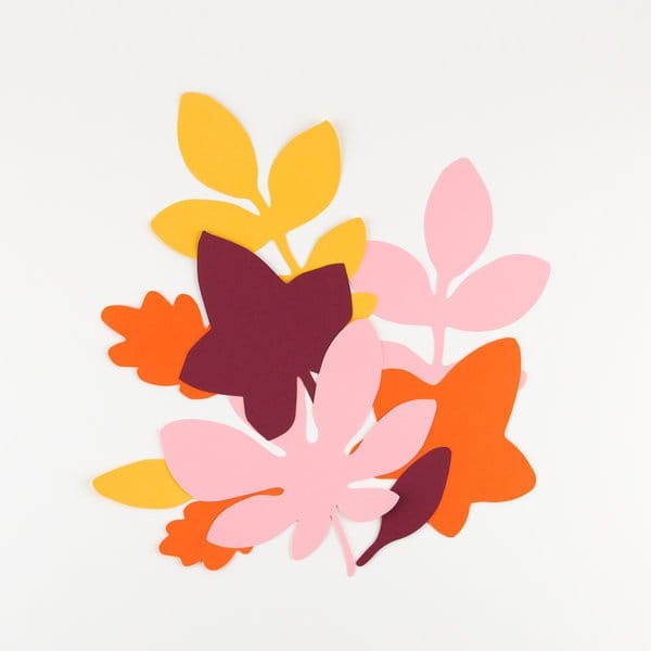 Lehtikoristeet on paketti oranssin, keltaisen ja punaisen sävyisiä lehtikoristeita.
