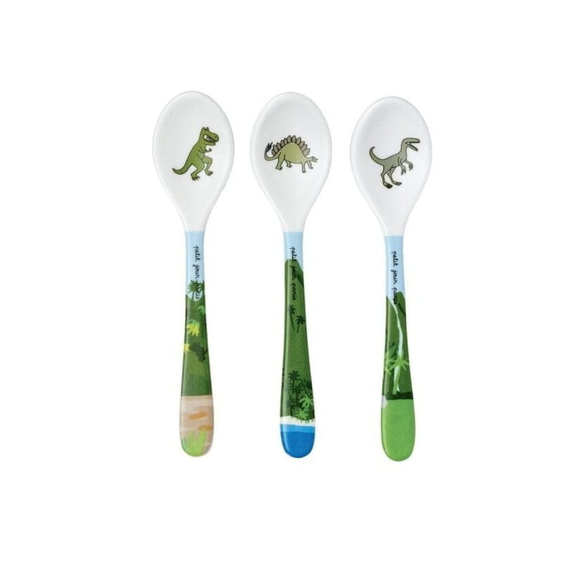Lusikkasetti dinosaurus sisältää 3 eri dinosauruksilla kuvitettua lusikkaa.