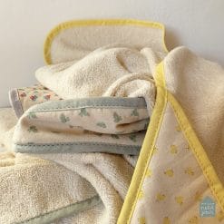 Puuvillainen vaipanvaihtoalusta on kätevä ottaa mukaan. Hoitoalustan toinen puoli on froteeta ja toinen puoli puuvillaa.
