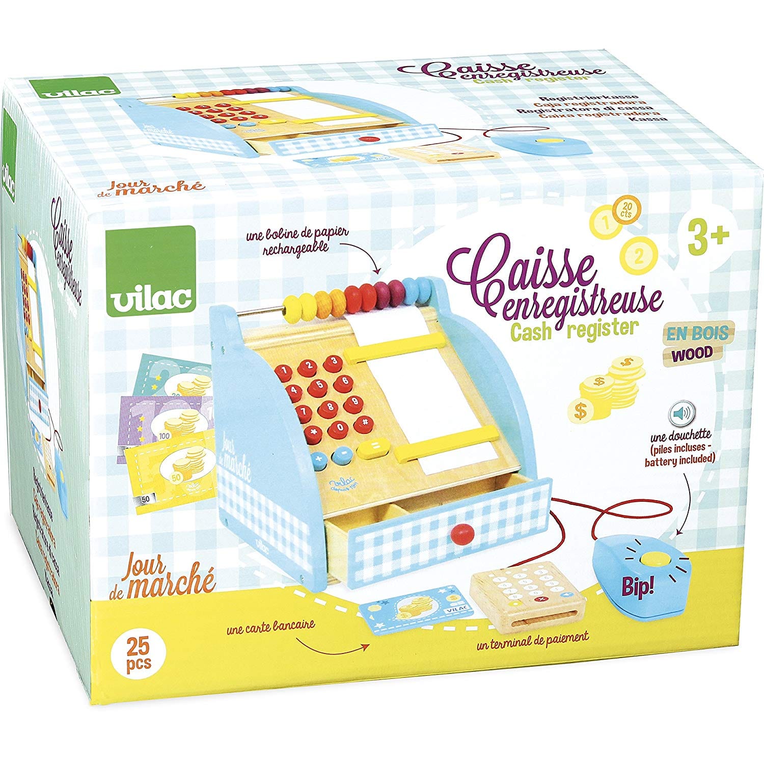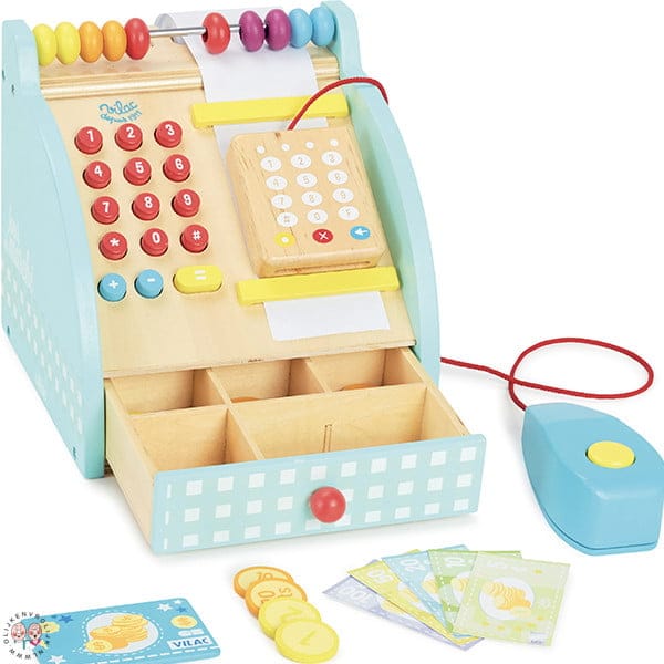 Vilacin kassakone on puuta ja siinä on monenlaisia toimintoja;